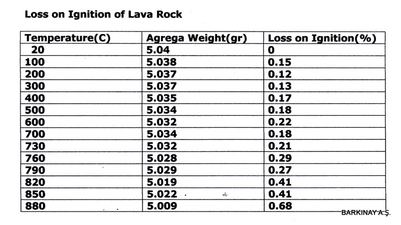 Please find loss of ignition for Grill Lava Rock